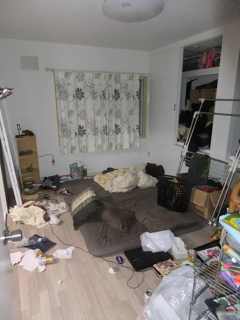 冒頭2部屋もこんな感じで、これ、さすがにイケないので、片付けが敢行されました。