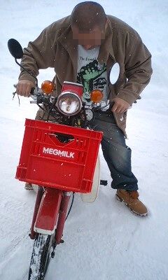 最初の写真は、MD90(郵政カブ)の「メグさん」の調子を確かめる大将。
