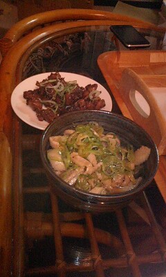 居酒屋勤務経験の腕がうなる、皮ポン(鶏皮とネギのポン酢仕立て)と砂肝炒め。