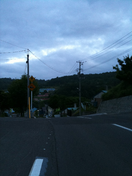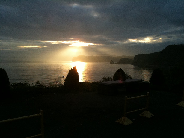 4時49分。余市手前の集落、忍路(おしょろ)にて日の出を迎える。