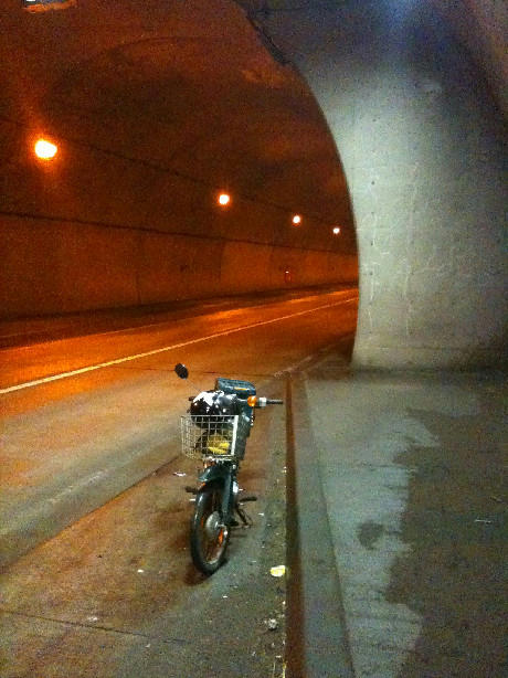 ふと限界を感じた時には、トンネルの停車スペースにいた。いっそここで仮眠を摂ろうかとも思うが、小雨が降り始め、トンネルの中にも冷たい風が流れ込んでいる。