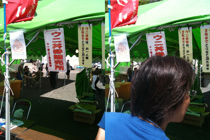 すまし汁つきで一杯1000円。行列に並ぶ必要があり、また特にうにを「すげえレアな食材」と認識していない私と大将は敬遠、遠くから見守る。