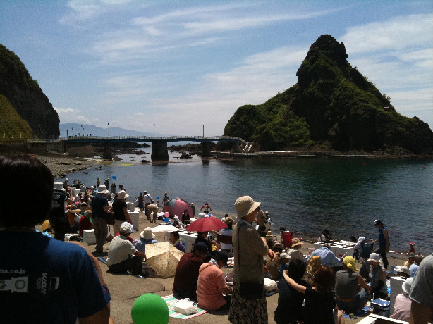 起床は11時頃だった。ぐねぐねとしながら準備をし、おっちょさんのホンダ・フィットで“郡来(くき)まつり”会場へと向かう。かつてニシン漁が行われていたこの辺りでは、産卵のために大量にニシンが来ることを群来と呼んだらしい。