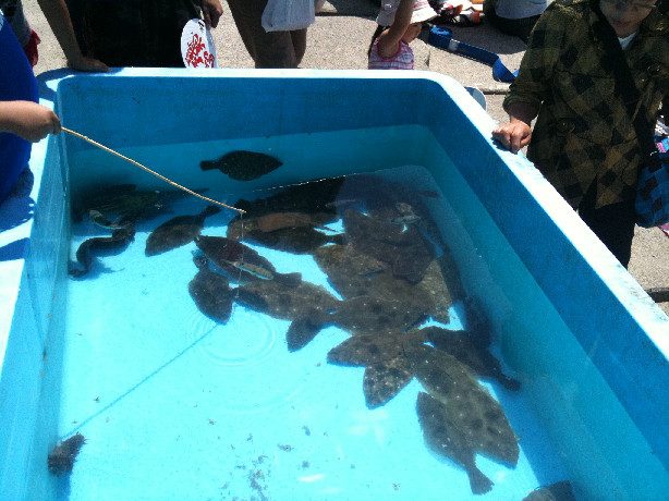 似顔絵、うに丼と来て次はカレイかなんか釣り。さすが漁業の街である。