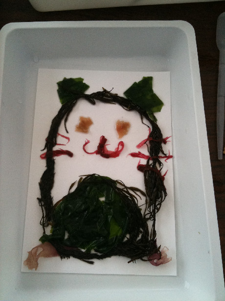 数々あるイベントのひとつ、海藻押し絵に挑戦。どうにも気味の悪い生き物ができあがる。