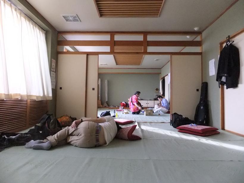 いずれにしても食事が終わればお昼寝タイムが来る。手前で寝ているのは札幌のドラマー、龍一さん。すすきのビートガレージ他で活躍中。