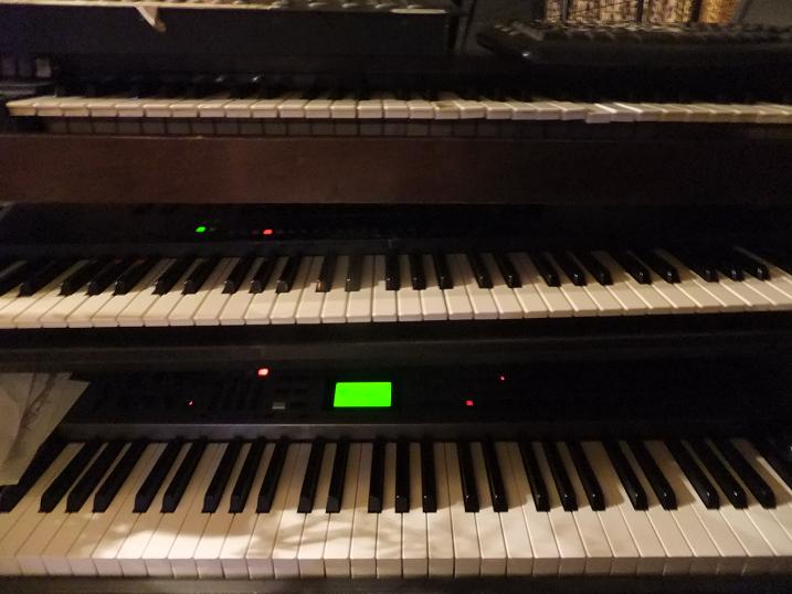 ビートガレージと言えば、ピアノの席が「オレの秘密基地」という感じで良い。電源タップがどれがどの機器なのか解らなかったり、壊れたボールペンやらが転がっていたり、オルガンのミの鍵盤が壊れて鳴りっぱなしだったりなどする。