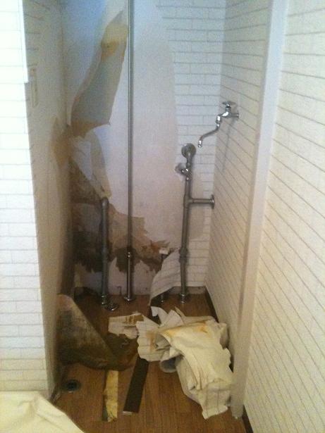 写真は業者さんがべろんべろんにクロスを剥がし、壁を空けた状態。